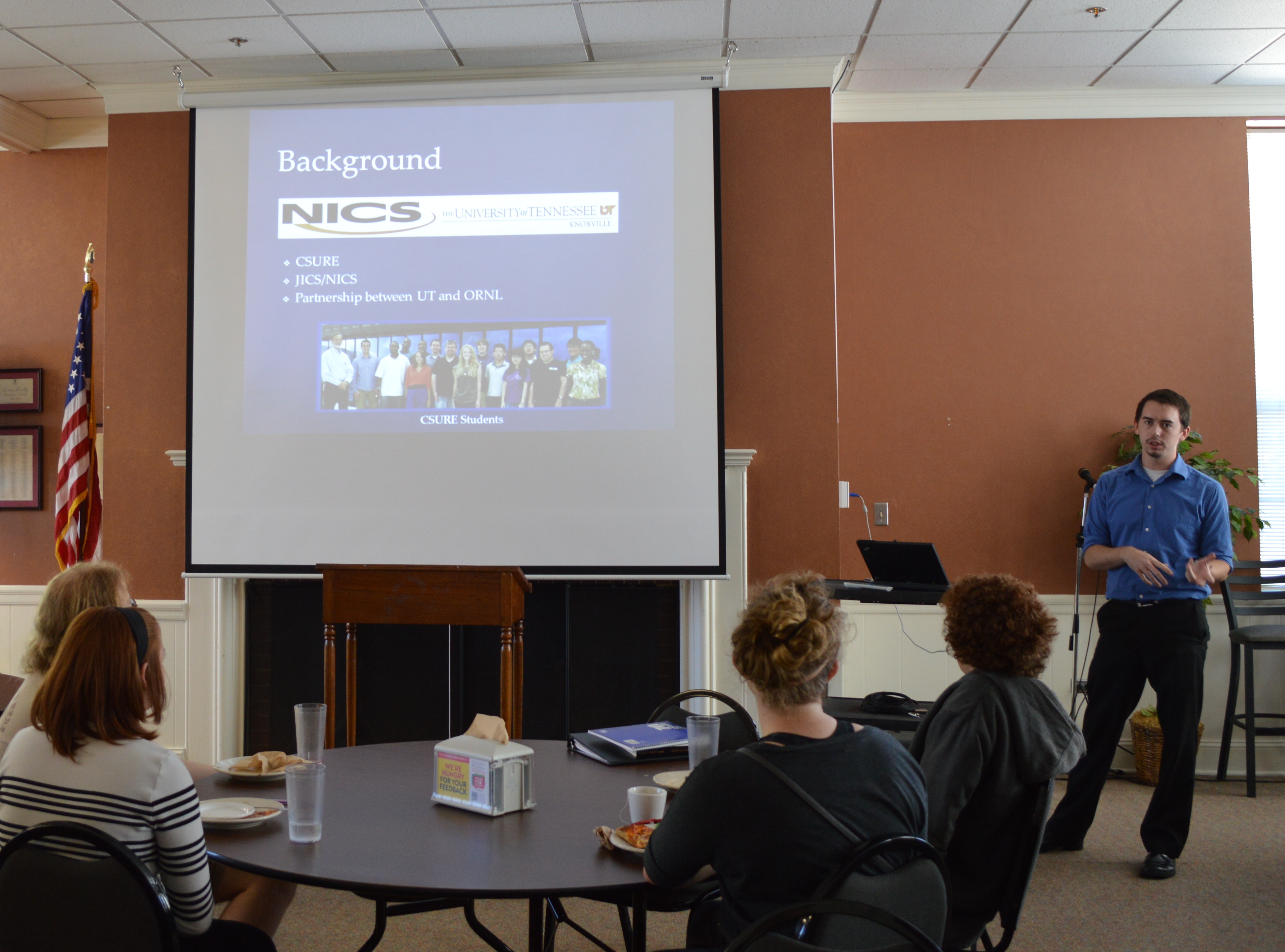 Senior computer science major David White spent the summer at the Joint Institute for Computational Sciences. He worked on one of the fastest super computers in the world, the Kraken. The group he worked with considered the problem of modeling physcial systems like the human heart which require complex interaction among different models from physics, including fluid flow, electric charge, and mechanical stress . Parallel computing has become a valuable tool as scientists discover they need to be able to perform multiple calculations at once as they seek to make more realistic models of the natural world. This was David’s second internship experience, having worked at ORNL previously. David stressed the importance of doing well in classes, but also of developing good relationships with professors and mentors as well as extra-curricular activities as important ingredients in a strong application for a competitive internship.