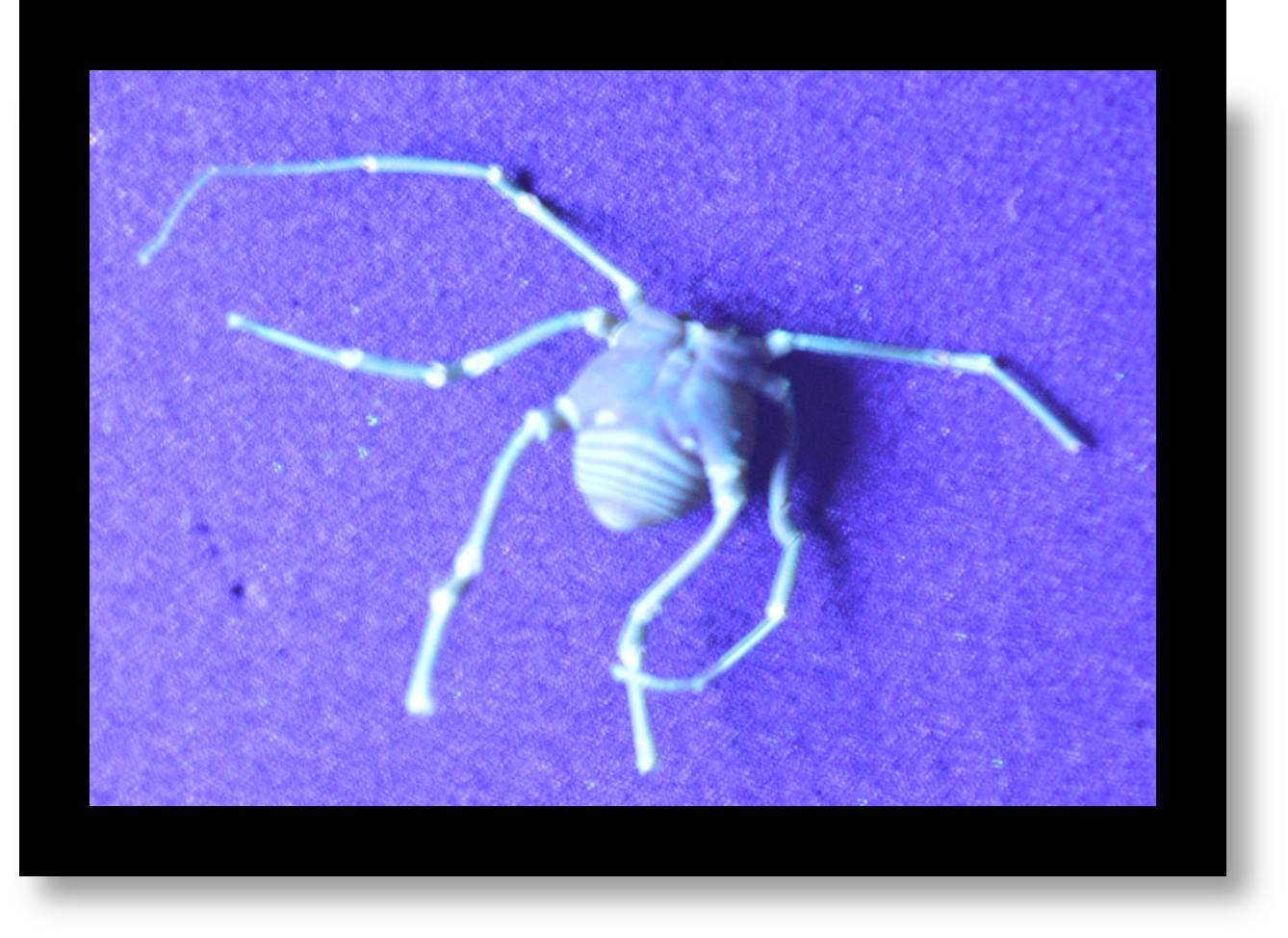 “It has been reported that some species of spiders are fluorescent, however very little is known about the evolutionary significance or the chemical nature of fluorescent compounds in Opiliones. These specimens were captured using black light in Cusuco National Park, Honduras. They glowed most intensely under ultraviolet (UV) light. The fluorescence was localized to specific pattern on the carapace and was distributed intensely throughout the palps. It appears that the legs are somewhat fluorescent, although hairs on the legs may mask the fluorescence to some extent. Carapace, palps, and legs from 39 specimens were homogenized half in phosphate buffered saline (PBS) and the other half in 95% Ethanol, and the extracts were monitored for fluorescence using a fluorescence plate reader and TLC. The results of this assay revealed the fluorescent compounds remained with insoluble material after PBS extraction but not in Ethanol. Studies are ongoing to characterize the fluorophores and we plan to compare them to other fluorophores identified in other arachnids. We would like to summarize these preliminary findings in a poster presentation.”