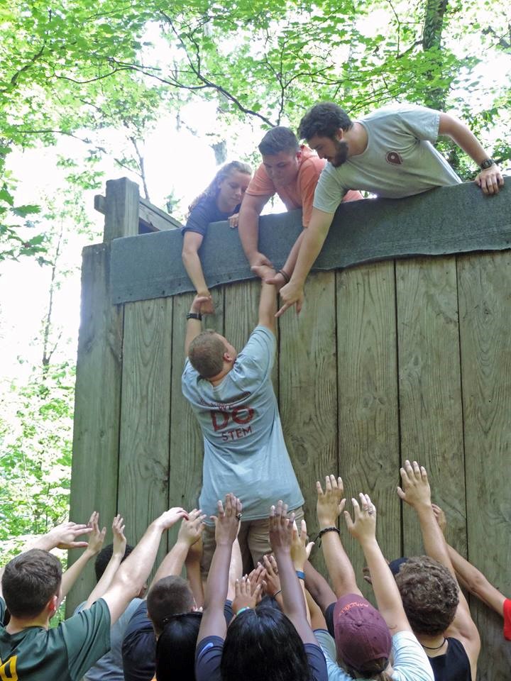 The ropes course on our second day brought us together as a team. We had to walk across a narrow path (the Windy Ridge) while holding hands and everyone had to make through before we could let go. At first, there was no strategy which involved having to start over multiple times. As we got further into the activity, we learned we had to communicate and work as a team to make it through the course. Throughout every course what I learned the most was that communication and strategy were the keys to success. The wall was the best activity because it taught us to trust each other. We knew that even if we fell down that our team was there to catch us.